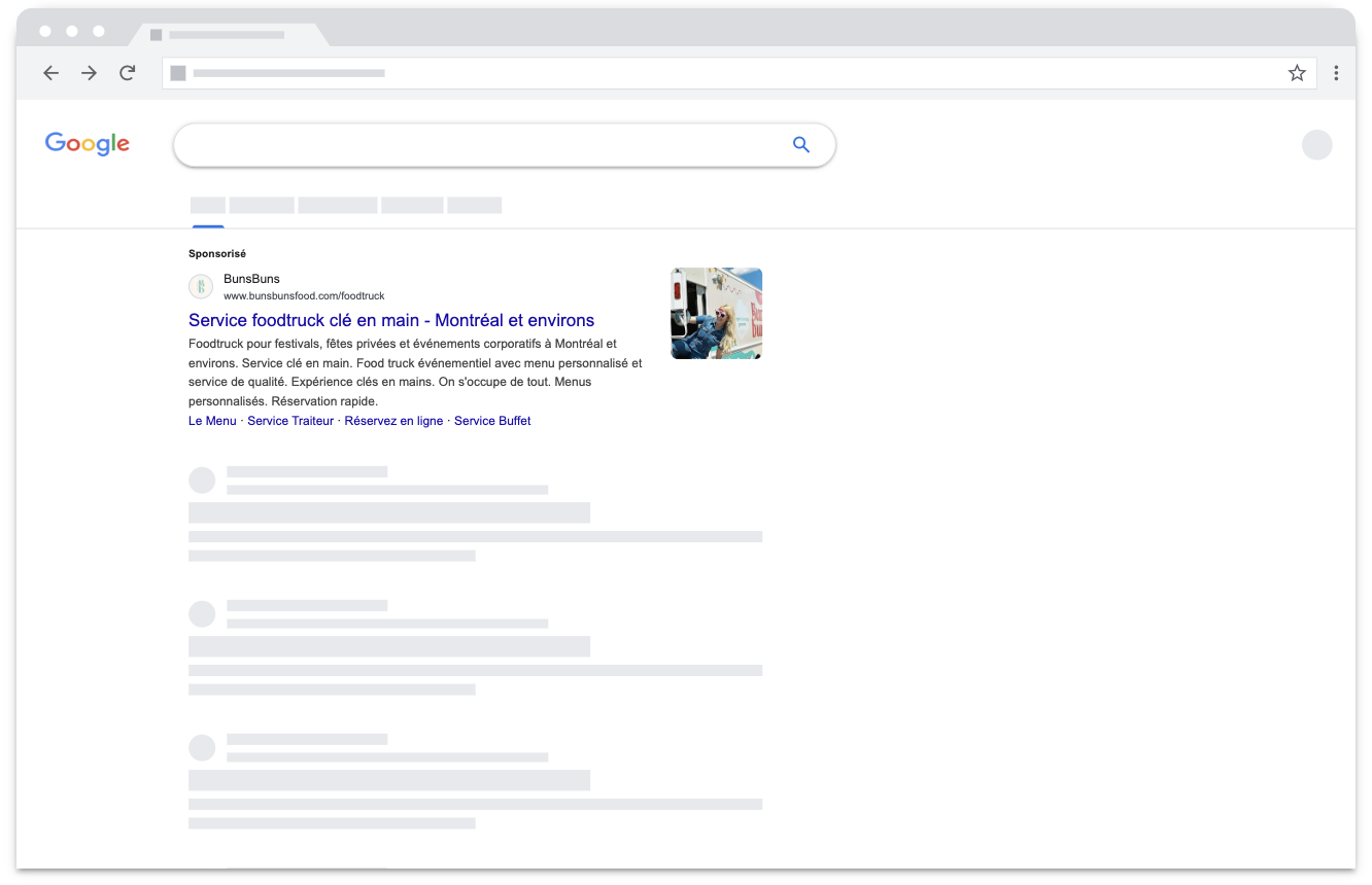 BunBuns désirait développer sa clientèle et accroitre le nombre de réservations pour son food truck pendant la période saisonnière de mai à octobre. Nous avons lancé une campagne publicitaire sur Google pour rendre BunsBuns visible auprès des personnes qui cherchent un service de food truck dans le grand Montréal.